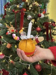 Y6 all made a Christingle for themselves and their YR buddies, with thanks to Tony’s Continental in East Finchley who kindly donated the oranges to us.